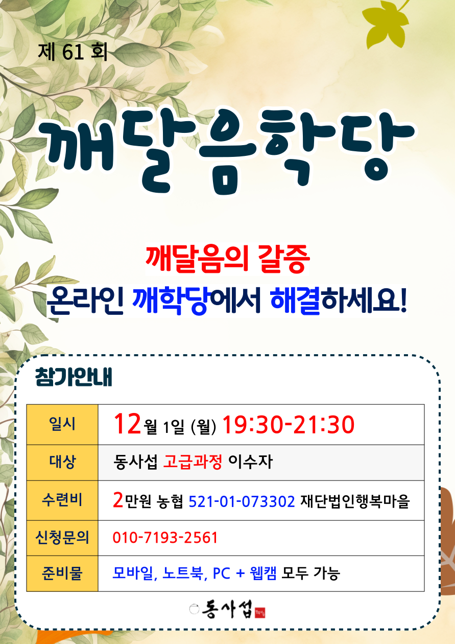 내일(12/1, 월) 저녁 7시 30분에 열립니다.
